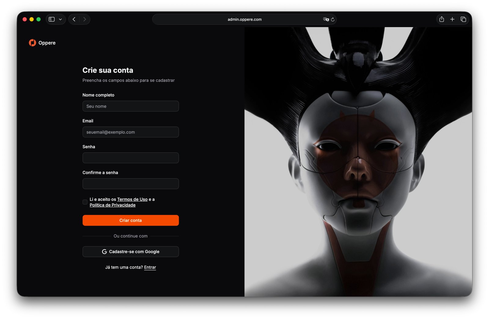 1. Acesse admin.oppere.com/sign-up e preencha os dados de cadastro.